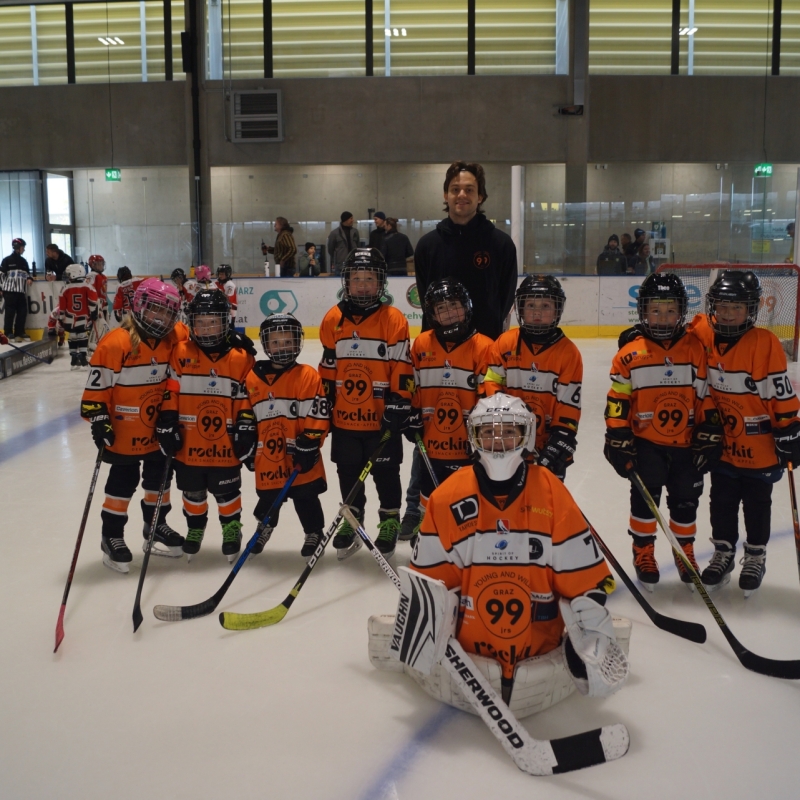 In unserer U7-Mannschaft legen wir den Grundstein für die Zukunft unserer jungen Eishockeyspielerinnen und -spieler. Im Mittelpunkt stehen die grundlegende Ausbildung im Eislaufen, Beweglichkeit und Athletik, sowie erste Erfahrungen im Stickhandling. Ebenso wichtig sind das Mannschaftsgefühl, der respektvolle Umgang im Team und die mentale Entwicklung, die Kinder in ihrer sportlichen und persönlichen Entwicklung stärkt. Bei den Graz99 Juniors ist jede und jeder Anfänger herzlich willkommen – gemeinsam entdecken wir den Spaß am Eishockey!